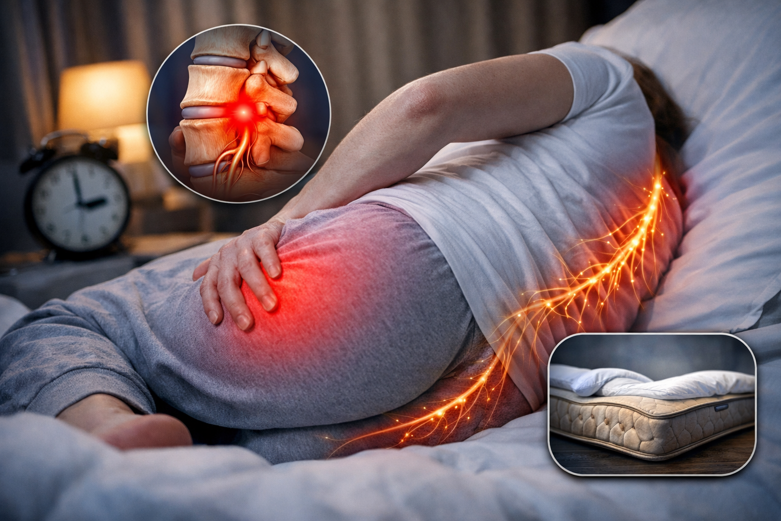坐骨神経痛で「夜になると痛くて寝れない」と感じる人は意外と多いものです。昼間はそこまで気にならないのに、布団に入った途端にお尻や足がズキズキする…そんな経験をした人もいるのではないでしょうか。