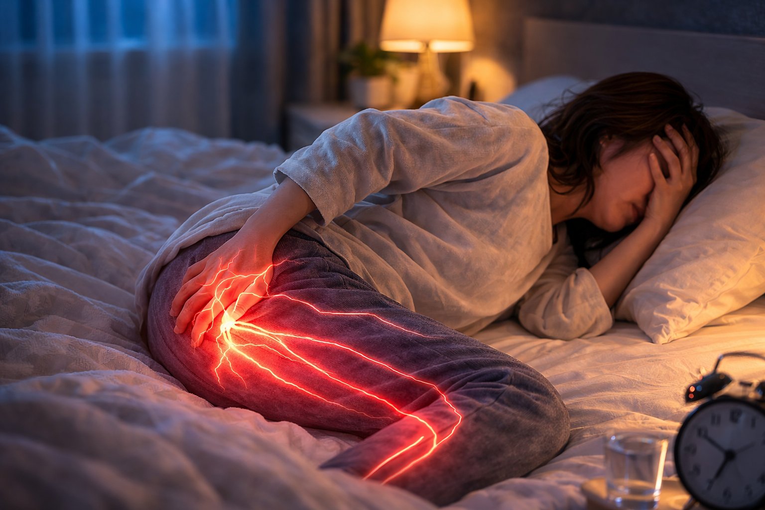 夜になると坐骨神経痛が強くなり、「痛くて寝れない…」と感じる人は少なくありません。日中はそこまで気にならなくても、布団に入った途端に痛みが目立つことがあります。