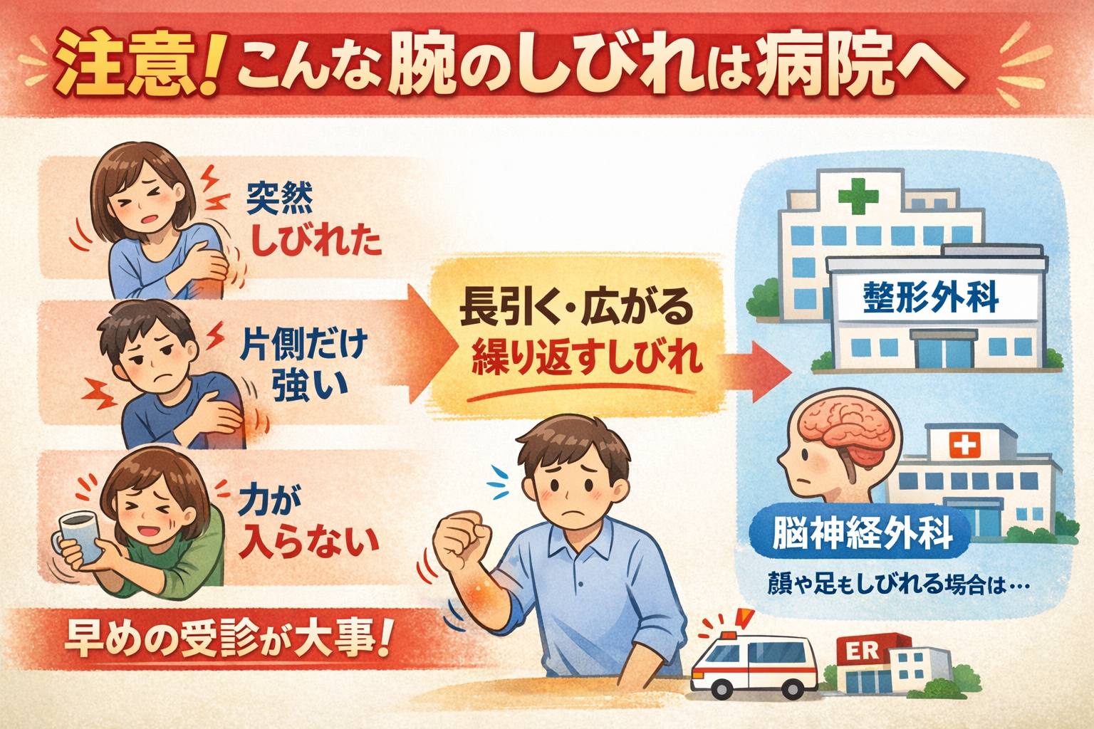 注意|こんな腕のしびれは病院へ