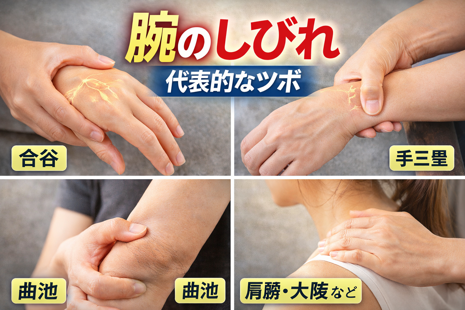 腕のしびれに使われる代表的なツボ