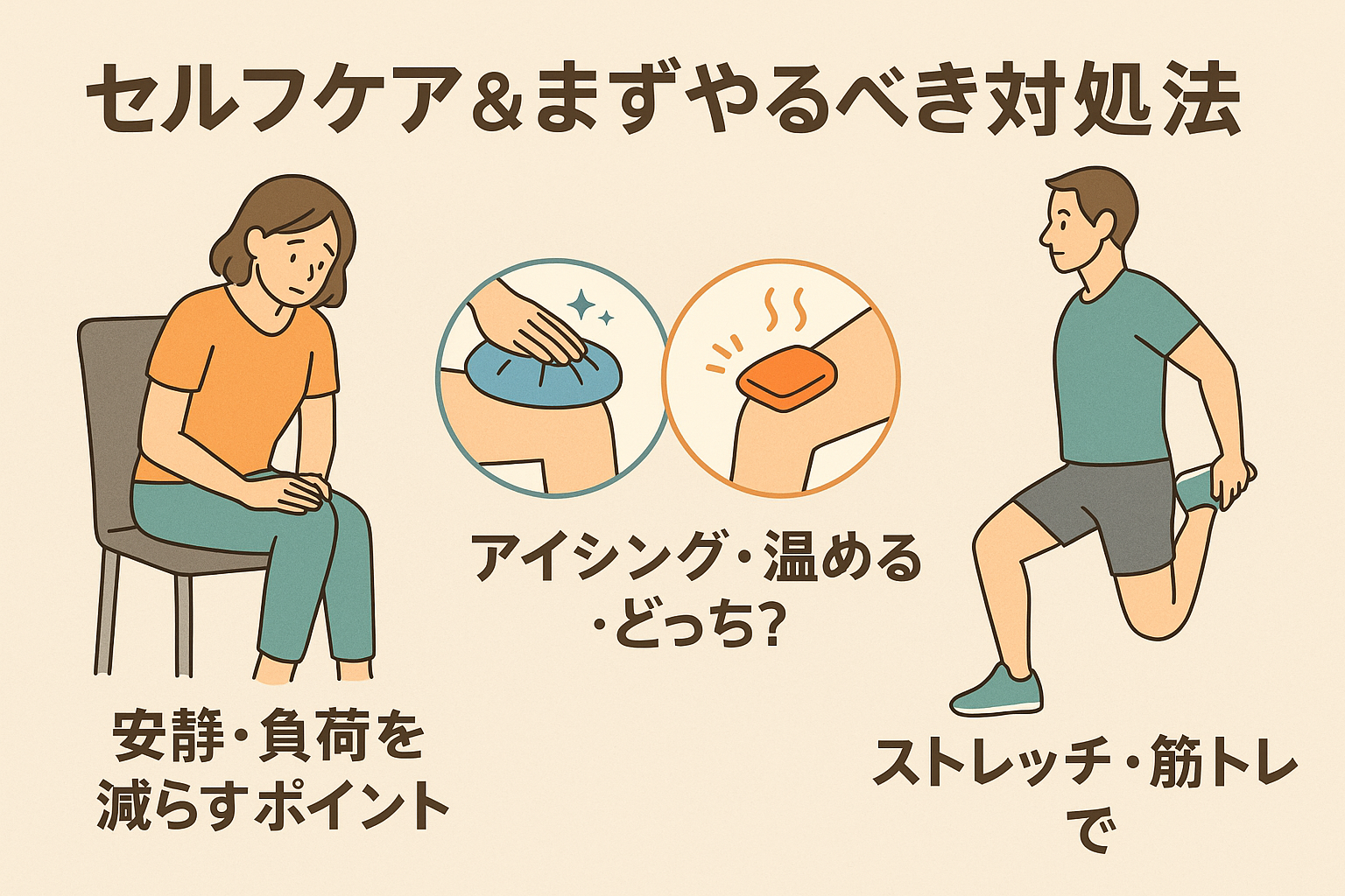 #膝の皿の下痛い#膝セルフケア#アイシングと温め#太ももストレッチ#膝蓋腱の負担ケ