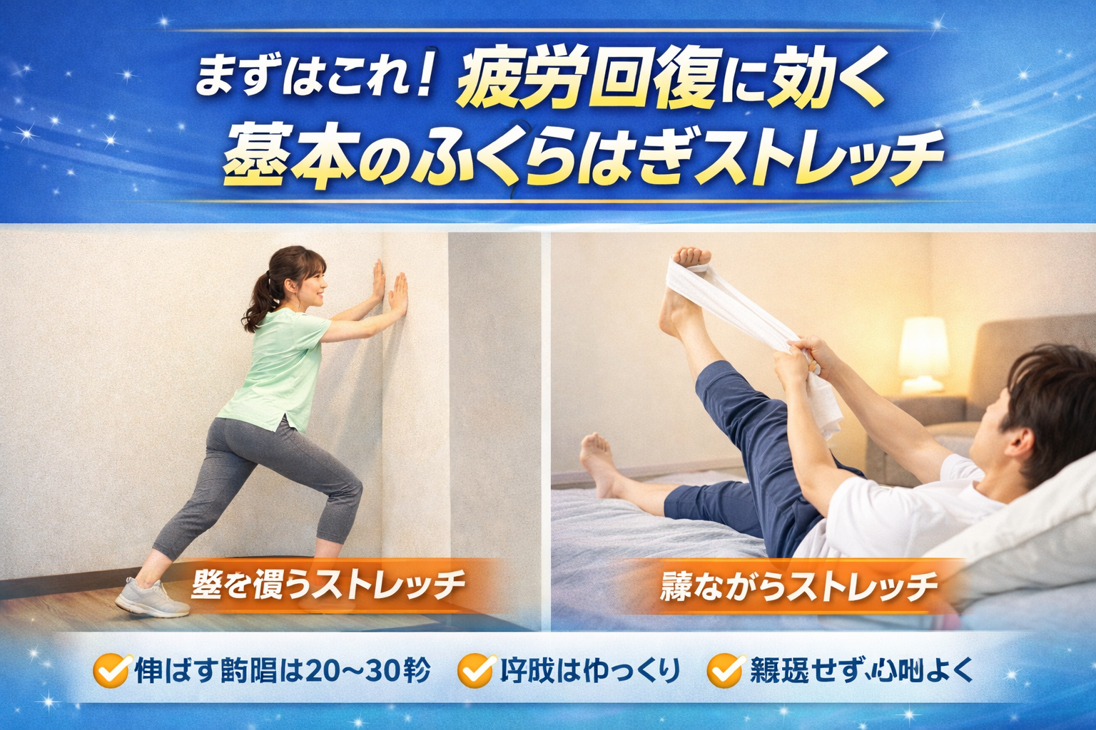 「ふくらはぎ ストレッチ 疲労回復ってよく見るけど、結局どうやるの?」