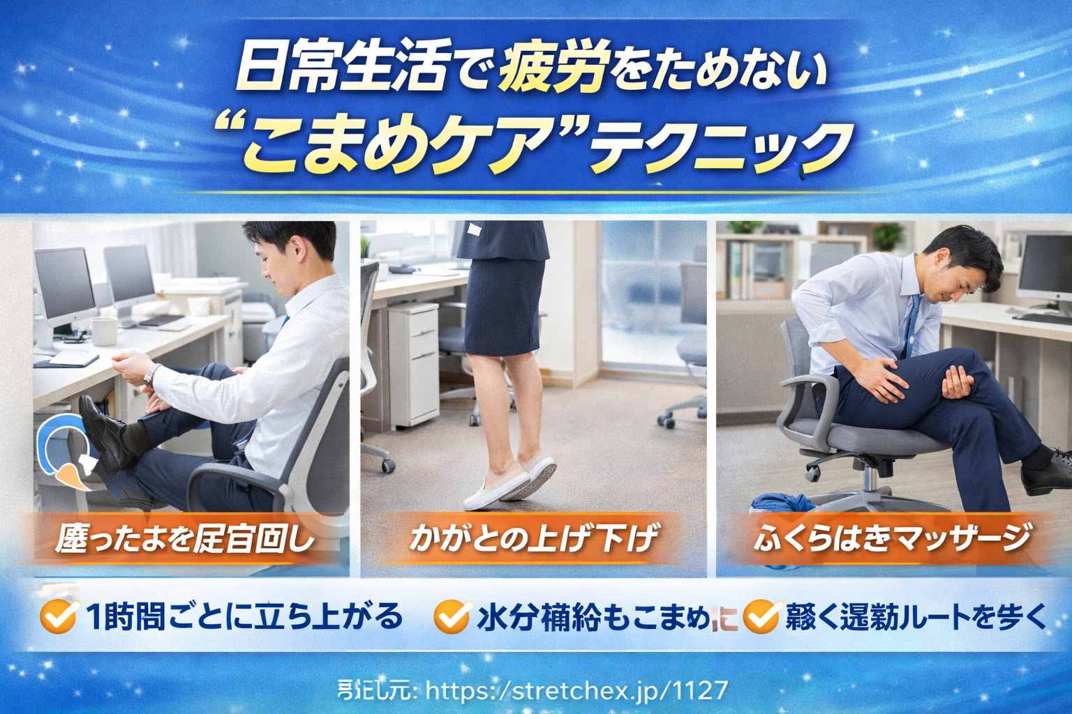仕事中にできる簡単ケア(足首回し・ふくらはぎマッサージ)