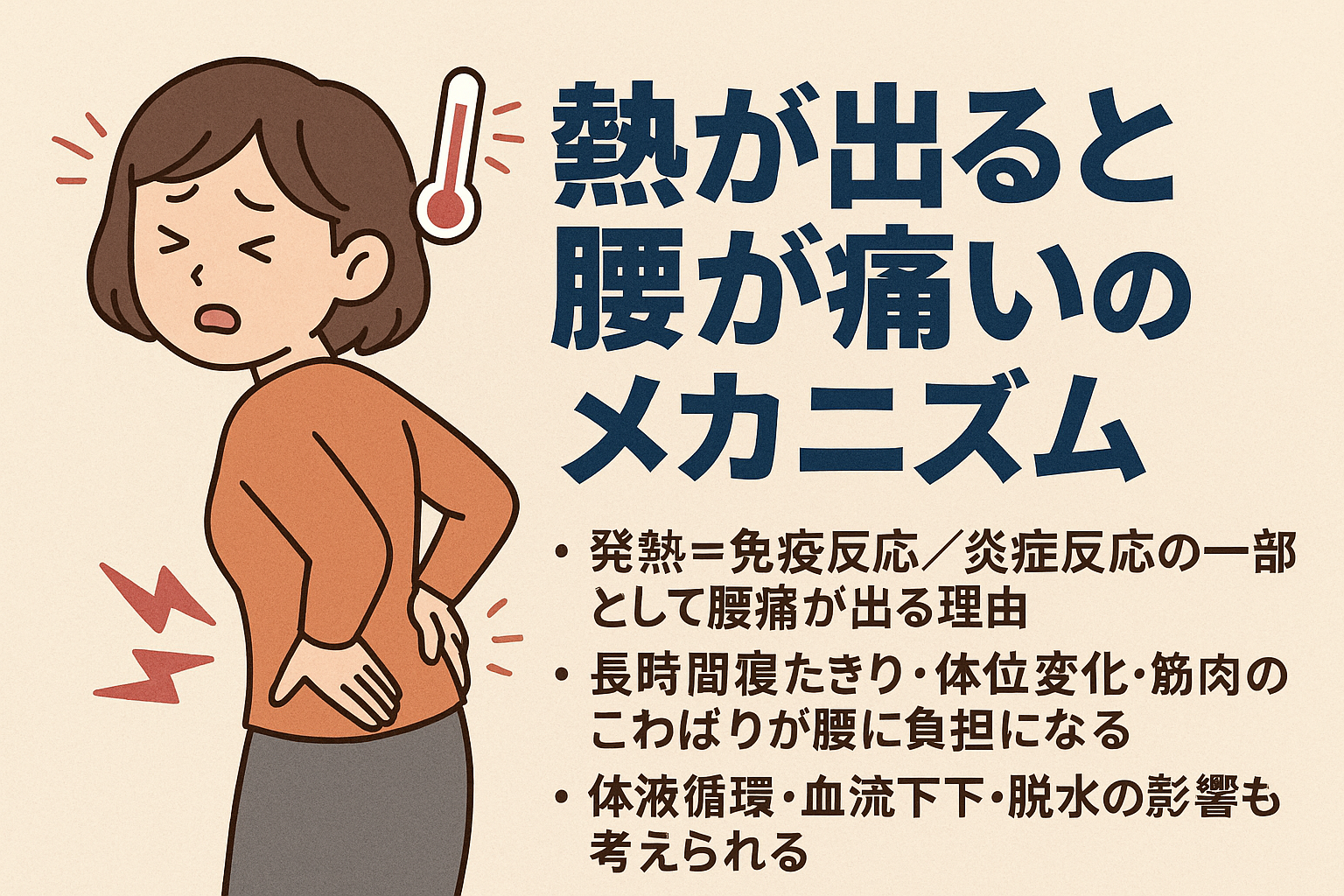 #熱が出ると腰が痛い#発熱と腰痛の関係#免疫反応と炎症#脱水と血流低下#風邪で腰が重い時のポイン