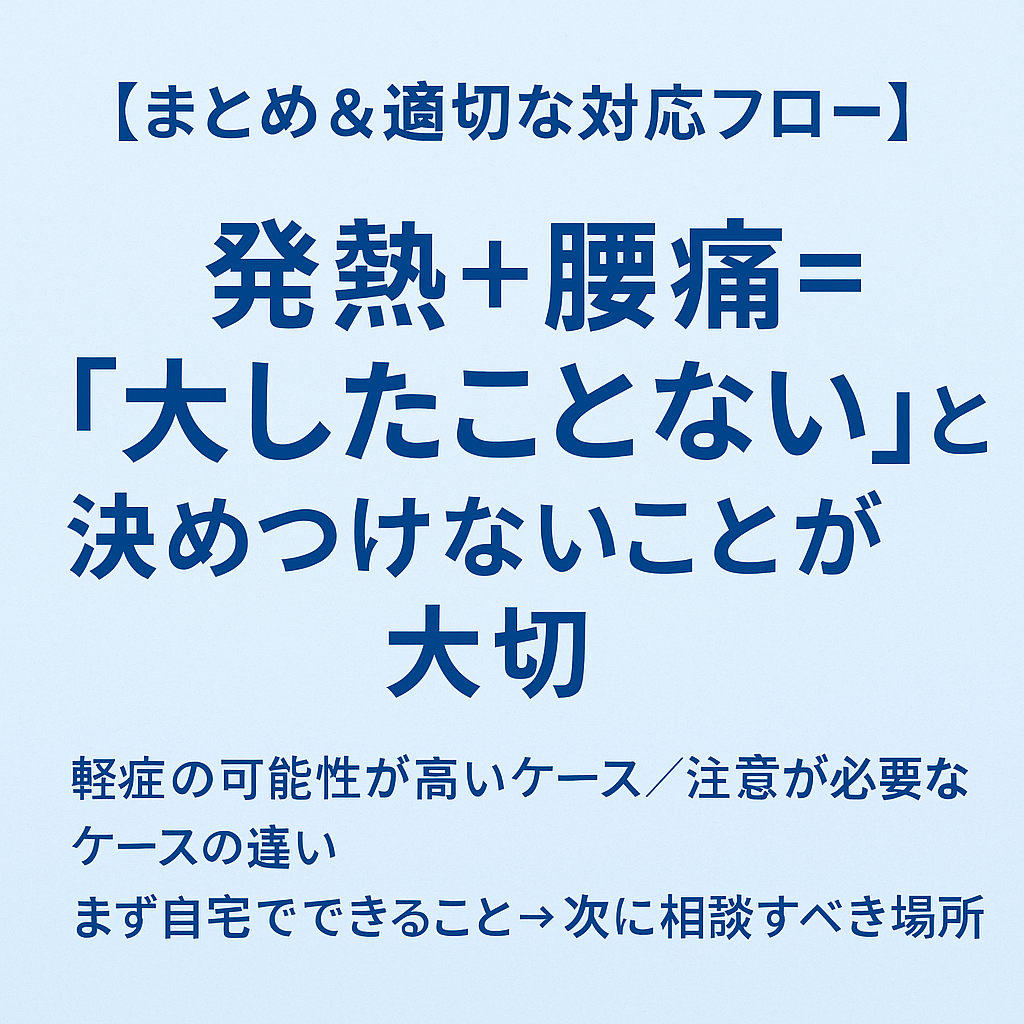 発熱と腰痛の組み合わせは、軽くても強くても “体からのサイン” です。