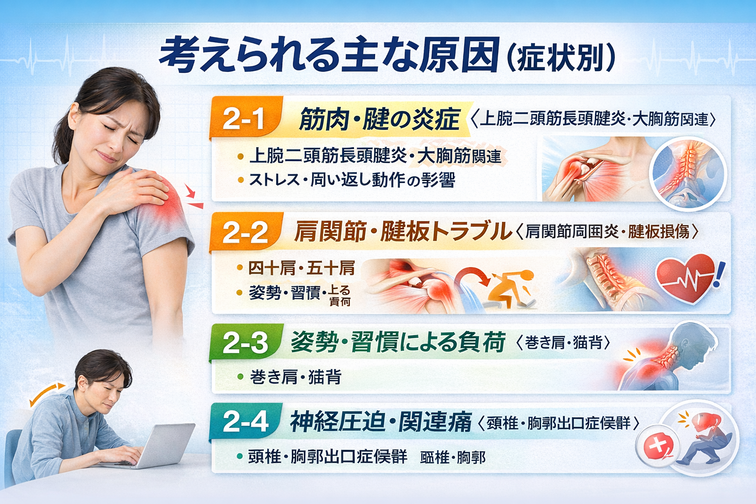1. 筋肉・腱の炎症(上腕二頭筋長頭腱炎・大胸筋関連)