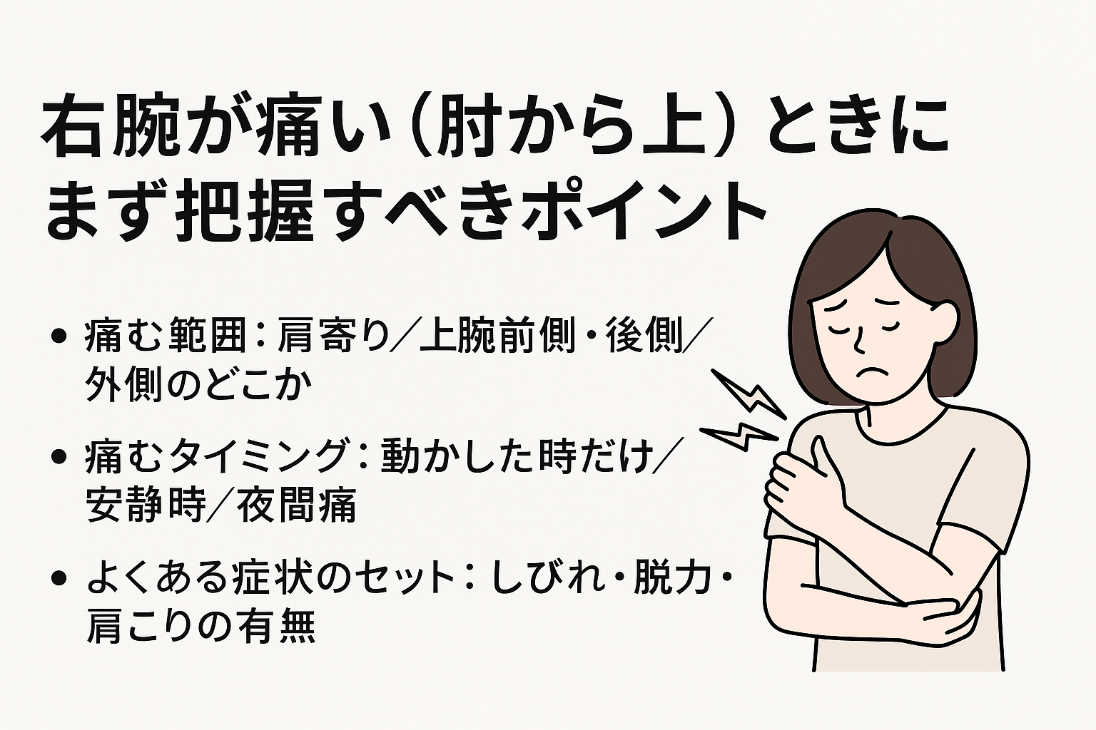 右腕が痛い(肘から上)ときにまず把握すべきポイント
