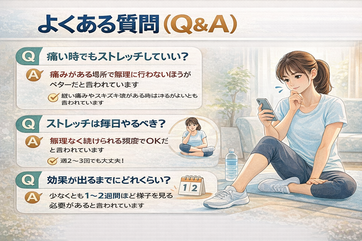 そのため、入浴後や軽く体を動かしたあとにストレッチを行うと、負担をかけづらいとも考えられています。