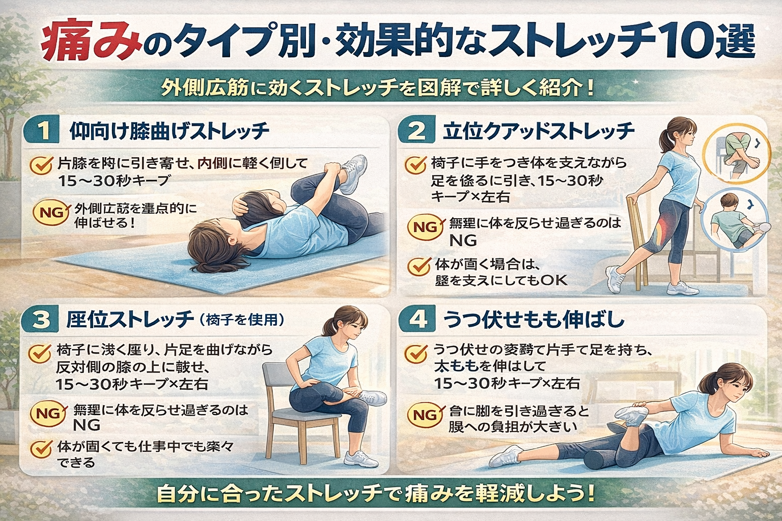 外側広筋 痛み ストレッチ|自宅でできる原因別ケアと効果的な伸ばし方を徹底解説