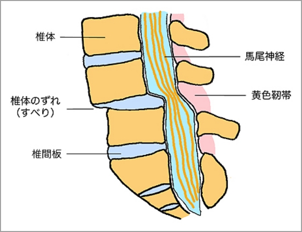 腰椎すべり症とは、背骨を構成する腰椎が、本来の位置から前後にずれてしまう状態を指すと言われています。