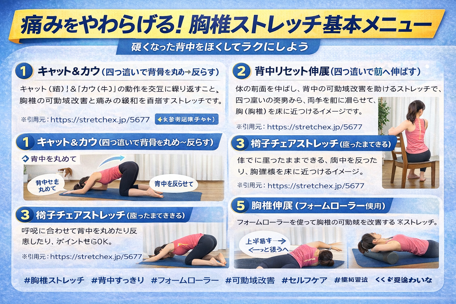 痛みをやわらげる!胸椎ストレッチ基本メニュー