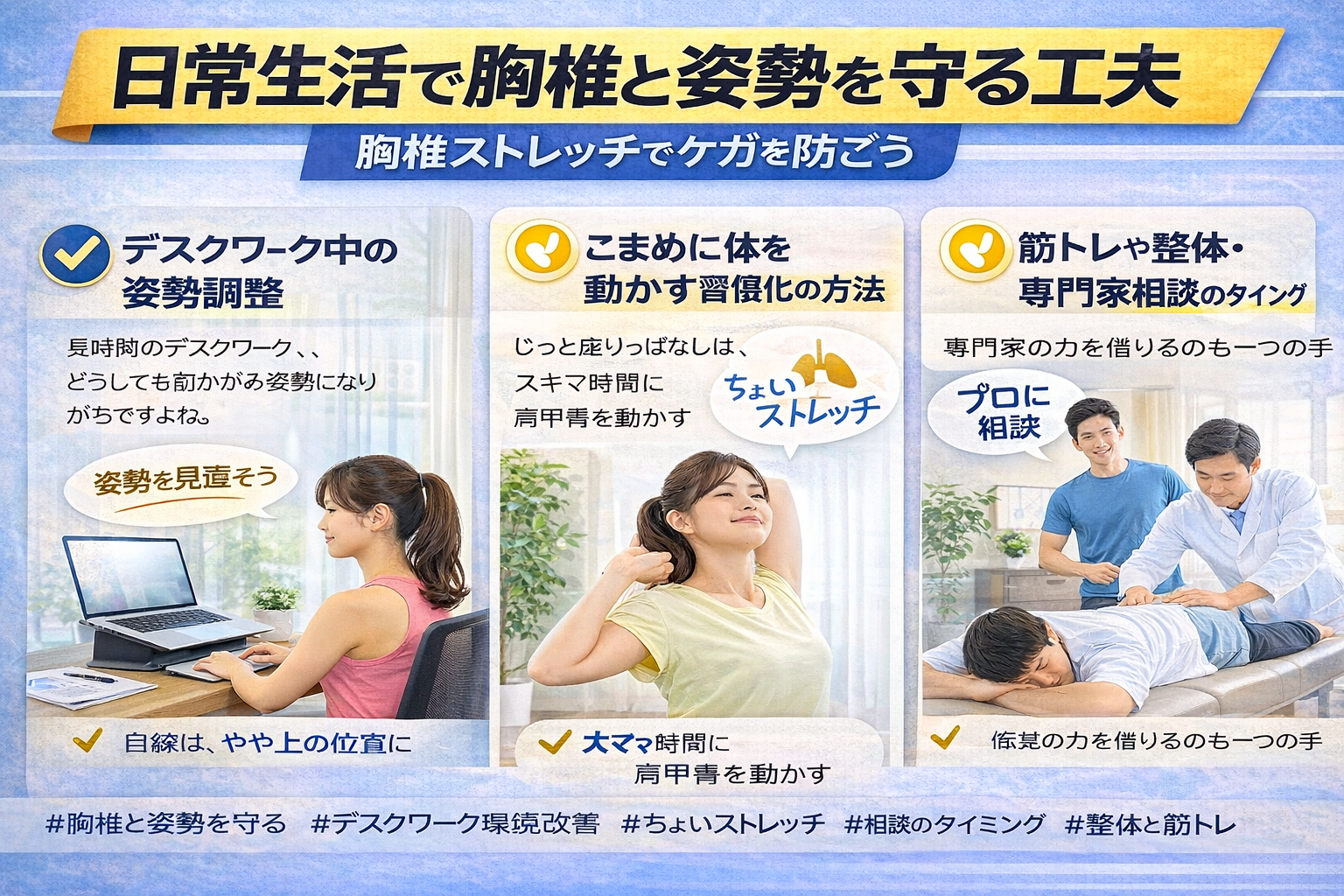 そんなとき、胸椎まわりをやさしく動かすストレッチが役立つと言われています。