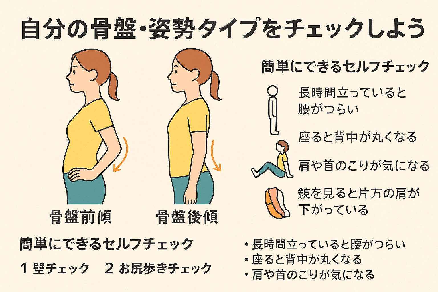 #骨盤チェック#姿勢タイプ#反り腰予防#猫背改善#骨盤ケア
