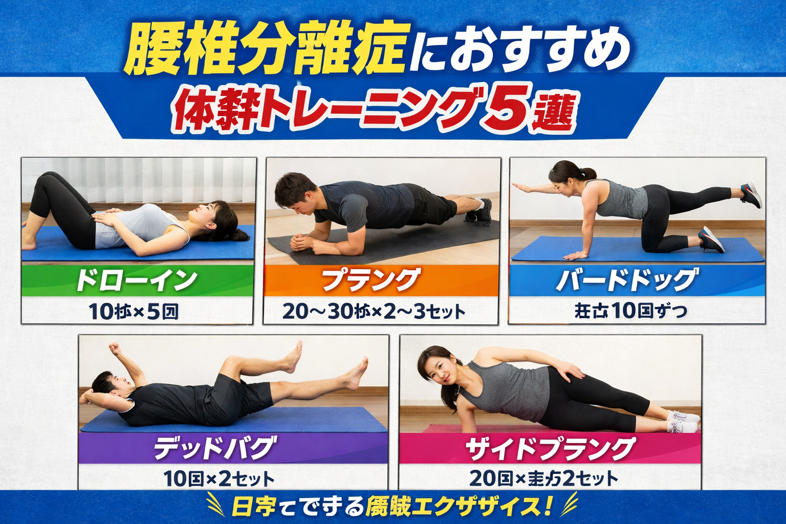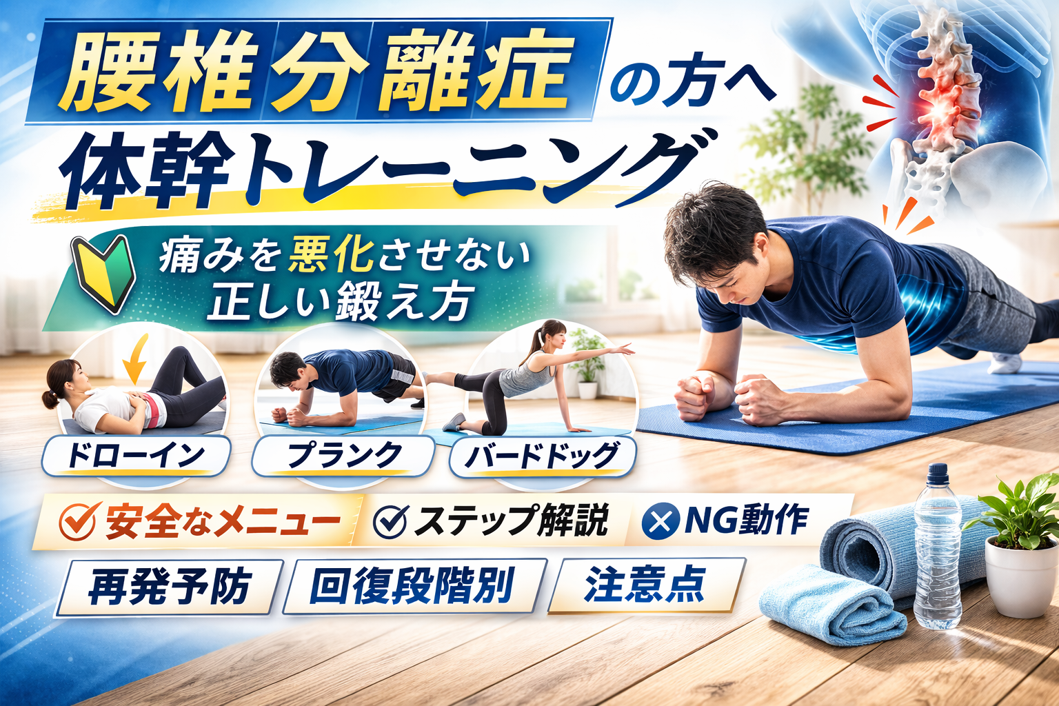 そんなふうに感じている方の中に、腰椎分離症が隠れているケースもあると言われています。特にスポーツをしている学生や、腰をよく反らす動作が多い方は注意が必要です。ここでは、まず基本を押さえながら、なぜ体幹トレーニングが大切なのかをわかりやすく整理していきます。