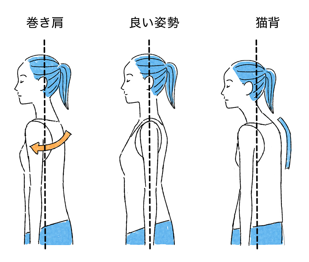 そんな場合、姿勢や生活習慣が関係していることもあると言われています。巻き肩や猫背のような姿勢が続くと、肩関節の位置が前にずれやすくなり、安定性が低下する可能性があるそうです。